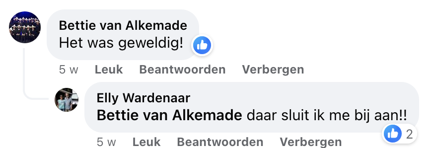 “Ik ben sinds september 2022 met heel veel plezier lid van het zangkoor Mixed Cultures. We zingen een zeer gevarieerd repertoire met liederen van alom de wereld. Er is een mooie balans tussen vakkundig (leren) zinge olv Maria voor ’t Hekke en gezelligheid. De oefenruimte, het Zeeheldentheater is geweldig.”